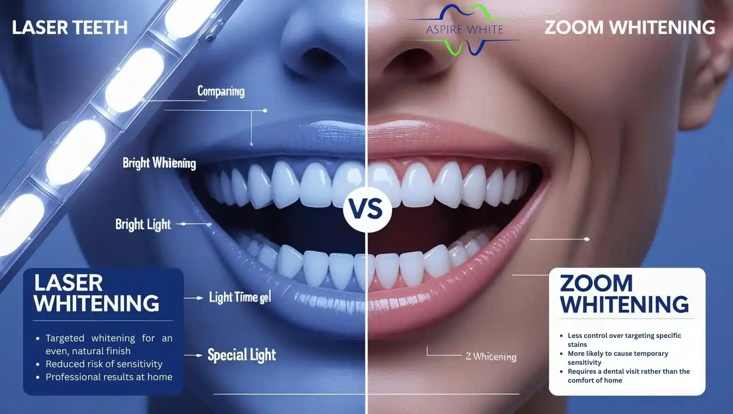 Want a Brighter Smile Fast—Should Aspire White Steer You Toward Zoom’s Speedy Coverage or Laser’s Precision Glow?